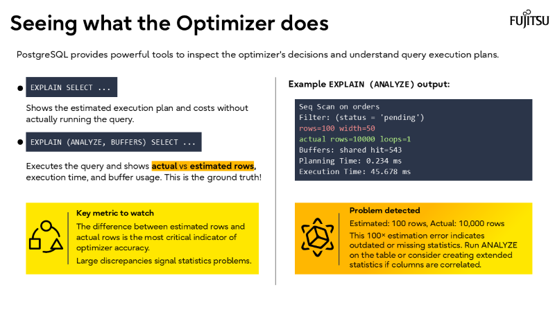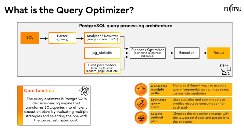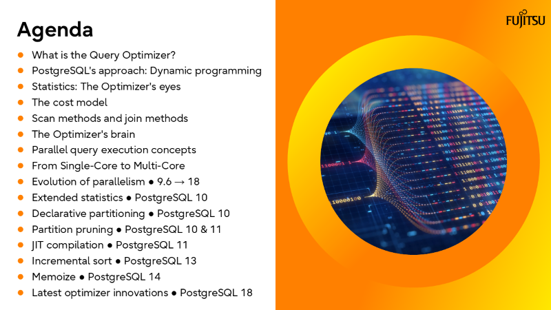 As Head of Product Services for Fujitsu Enterprise Postgres, I’ve seen firsthand how optimizer advancements translate into real-world business outcomes. At the recent PGDU 2025 conference in Sydney, I couldn’t present this session live, but I’ve prepared a comprehensive slide deck that we’re now sharing here for a wider audience.