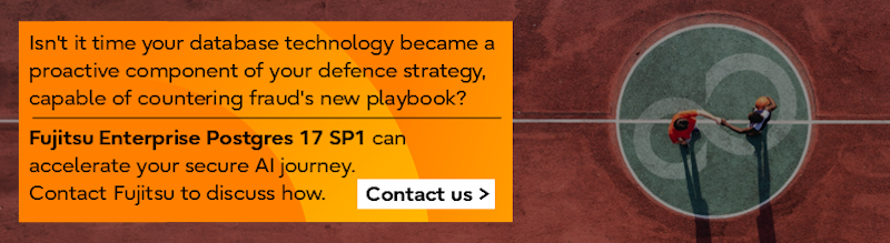 Fujitsu Enterprise Postgres 17 SP1 is engineered for this challenge. Is your current database merely holding data, or is it ready to actively participate in identifying and mitigating AI-driven fraud? Fujitsu Enterprise Postgres 17 SP1 is designed for active participation: