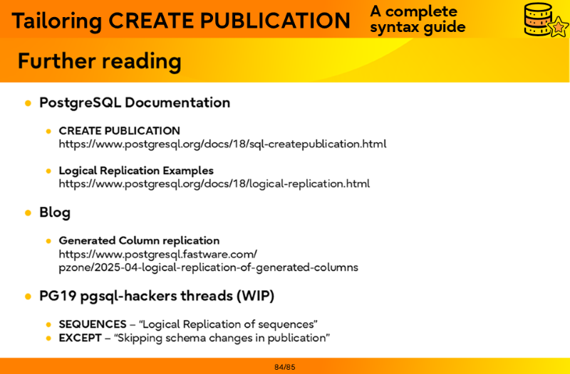 These materials showcase the expertise, innovation, and practical experience our team brings to the PostgreSQL ecosystem, and we hope they inspire continued learning and collaboration across the community.