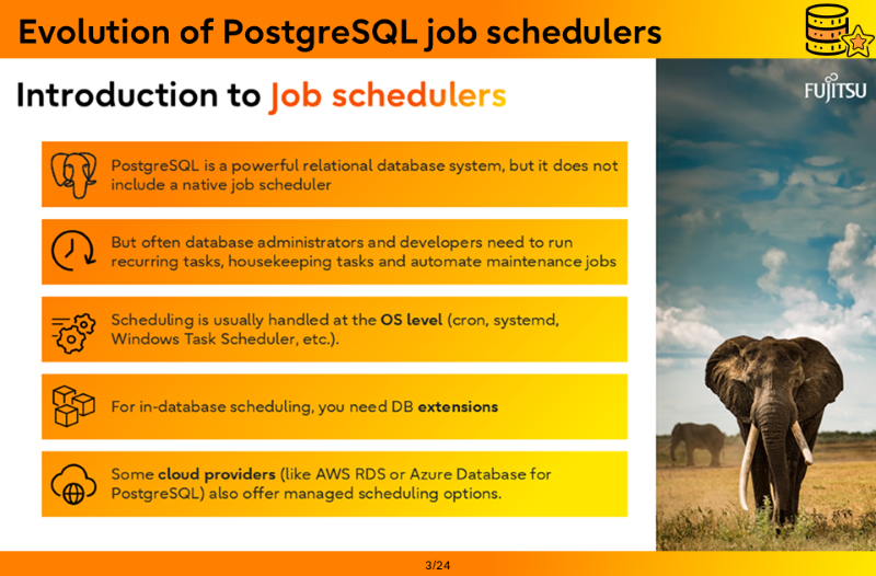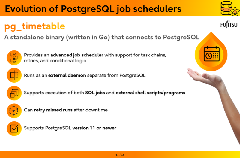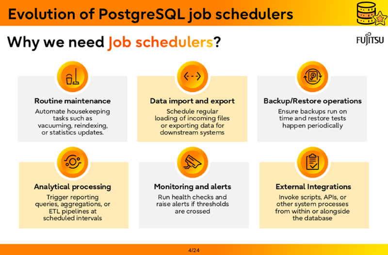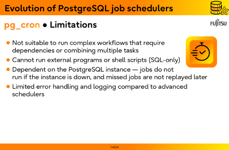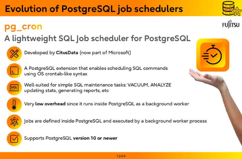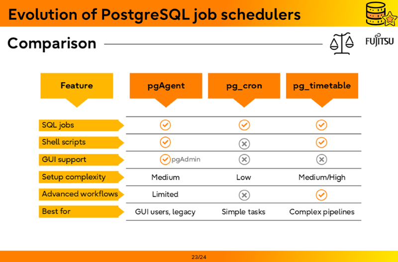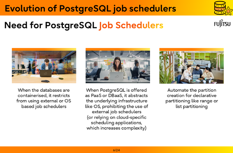- Evolution of PostgreSQL job schedulers