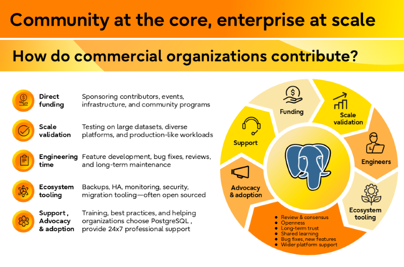 - Community at the core, enterprise at scale: How does PostgreSQL thrive through collaboration?