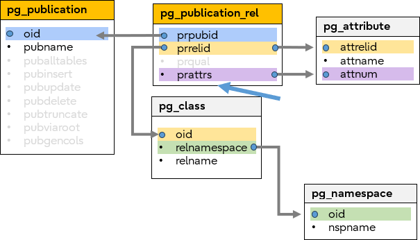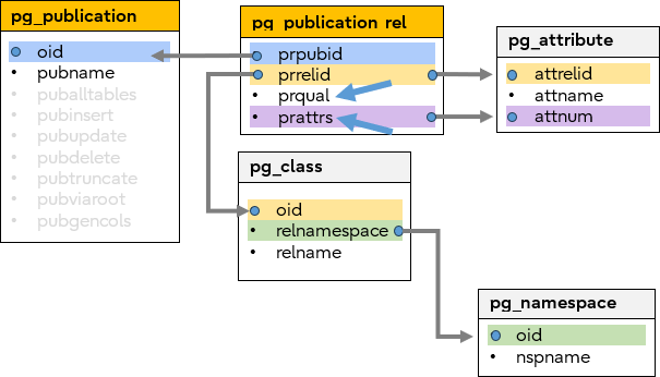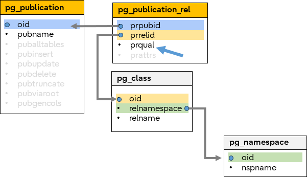 - pg_publication_rel
